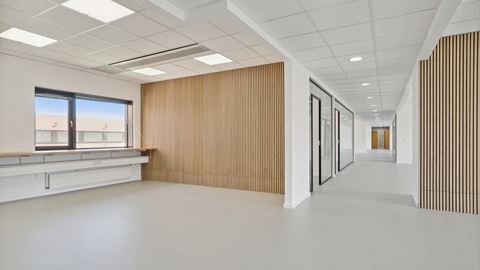 Lyst kontor med fri parkering og ladestandere